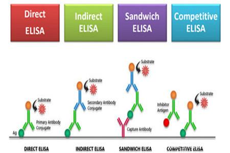 目前市面上的Elisa試劑盒檢測(cè)原理主要有以下四種:直接法,間接法,夾心法,競(jìng)爭(zhēng)法。